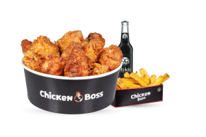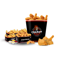 • 18 Hot-Wings • 6 Filet Bites • 4 Fried Chicken-Bucket • 3 Pommes frites • 4 Saucen nach Wahl