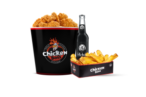• Fried Chicken Bucket • Sauce nach Wahl • Beilage nach Wahl • Getränk 0,33l nach Wahl zzgl. Pfand