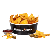 • Burger mit paniertem Hähnchenbrustfilet, Gurken, Salat, roten Zwiebeln, Jalapenos, Boss-Spezialsauce und Salsasauce • 1 Beilage nach Wahl • 1 alkoholfreies Getränk 0,33l nach Wahl zzgl. Pfand