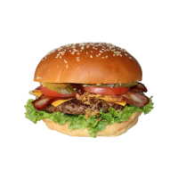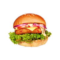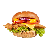 • Burger mit paniertem Hähnchenbrustfilet, Salat, Gurken, roten Zwiebeln und Mayonnaise • 1 Beilage nach Wahl • 1 alkoholfreies Getränk 0,33l nach Wahl zzgl. Pfand