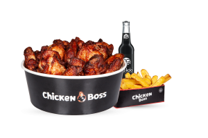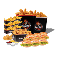 • 18 Hot-Wings • 6 Filet Bites • 4 Fried Chicken-Bucket • 3 Pommes frites • 4 Saucen nach Wahl