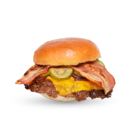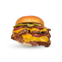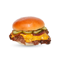 mit Smash Beef Patty, Cheddar, Gurke, gebratene rote Zwiebel und Specialsauce