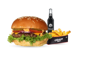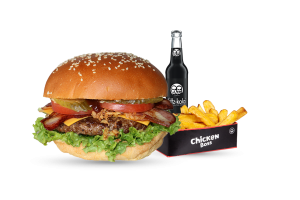 • Burger mit gegrilltem Hähnchenbrustfilet, Cheddar, Rucola, Gurken, roten Zwiebeln und Boss-Spezialsauce • 1 Beilage nach Wahl • 1 alkoholfreies Getränk 0,33l nach Wahl zzgl. Pfand