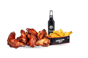 • 12 Hot-Wings • 6 Filet Bites • 2 Crispy Chicken Burger • 2 Pommes frites • 3 Saucen nach Wahl